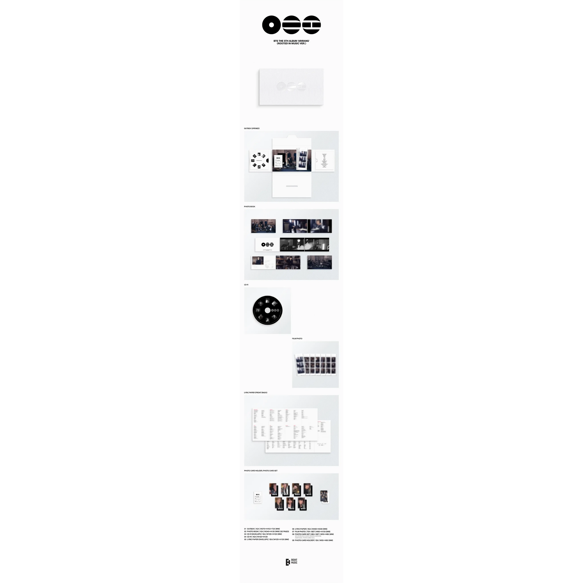 - Incluye: CD Envelope, CD, Lyric Paper Envelope + Lyric Paper, Film Photo (7), Photo Card Set (7), Photo Card Holder.